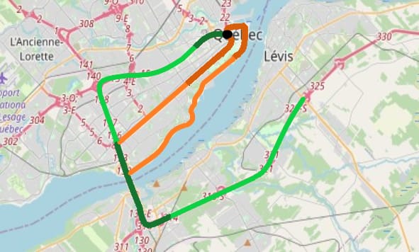 Le dernier argument est la congestion au point d’arrivée. Disons que nous partons de Lévis et nous voulons se rendre dans le vieux Québec. On peut facilement élargir la 20 et la 440, ainsi qu’ajouter une voie réversible sur le pont Pierre Laporte, mais comment est-ce qu’on gère cela à l’entrée du Vieux Québec ? On ne peut pas élargir les rues car tout est déjà bâti, donc ce qui va arriver, à moins qu’on ne démolisse des bâtiments historiques, c’est que la congestion sur la 440 va augmenter car l’arrivée dans le vieux n’est pas optimisée pour un tel débit, pour essayer de se sauver de la congestion de la 440, les gens vont utiliser d’autres chemins non adaptés et la ville au complet va devenir un gros bouchon.